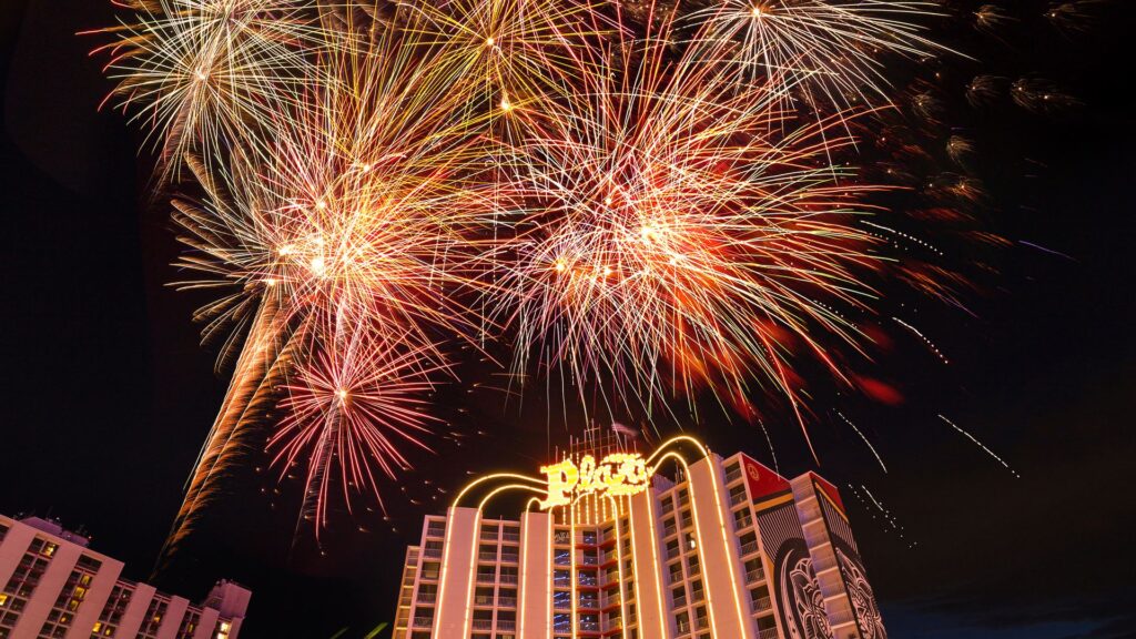 Con gran éxito esta llevado el Hotel y Casino Plaza, quien al paralelo a los espectáculos pirotécnicos de varios hoteles y casinos del centro, así como la Fremont Street Experience ofrecen una programación especial e iluminan el cielo de Las Vegas con su espectáculo de fuegos artificiales en vivo todos los viernes.