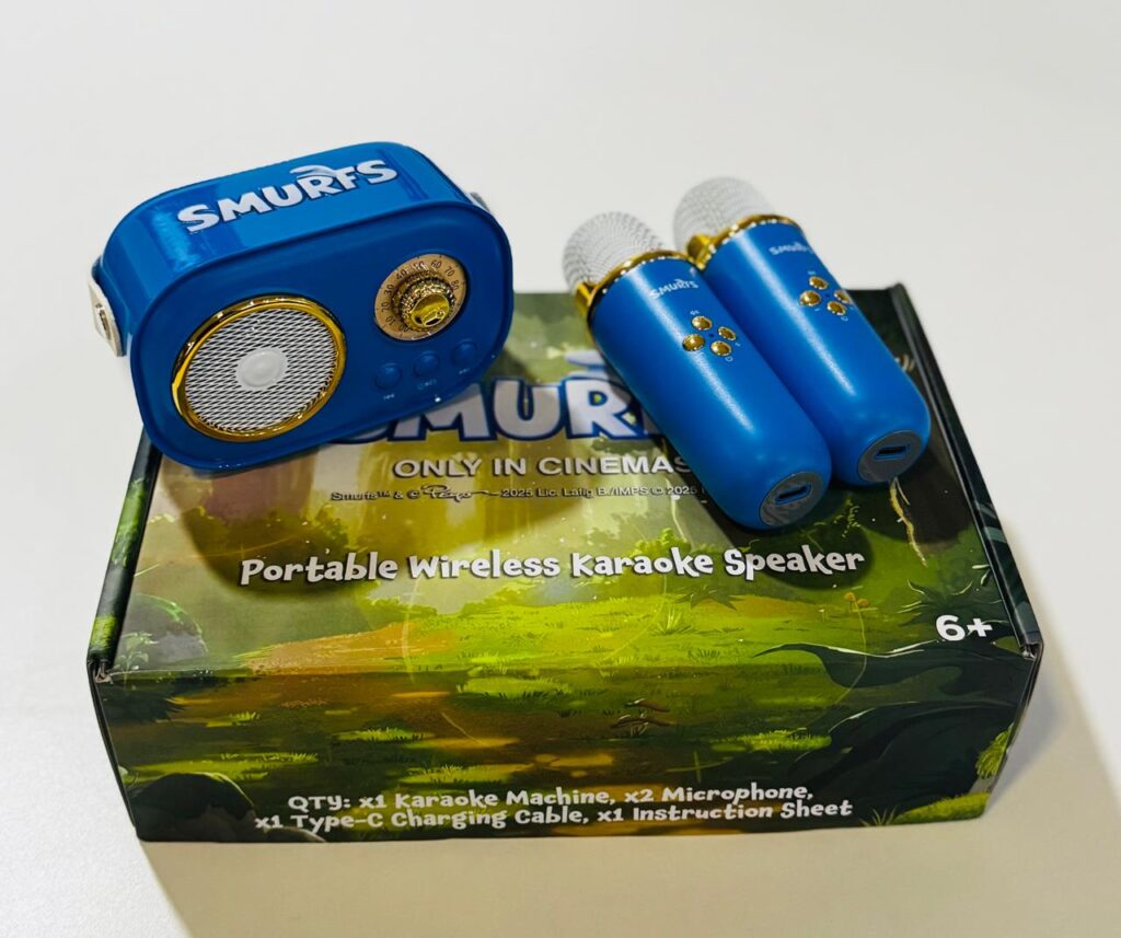 Con el estreno de la película de Los Pitufos, tenemos una bocina oficial de karaoke portable de Los Pitufos.
