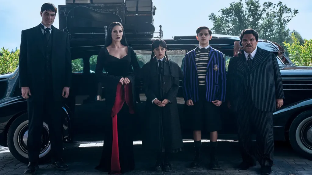 Catherine Zeta-Jones y Luis Guzmán son irresistibles como los excéntricos padres de Wednesday, y Burton los acerca a la acción en la segunda temporada, con un giro ingenioso, donde los siempre problemáticos, deciden mudarse a una casa en el campus.