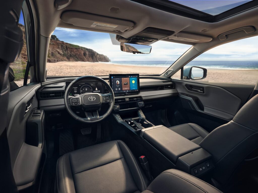 Al interior, RAV4 HEV ofrece un espacio amplio y bien distribuido para cinco pasajeros, con una configuración de asientos pensada para el confort y la funcionalidad. Los materiales de alta calidad, junto con elementos como el techo panorámico y el quemacocos, crean un ambiente cómodo y agradable, ideal tanto para el día a día como para viajes largos.