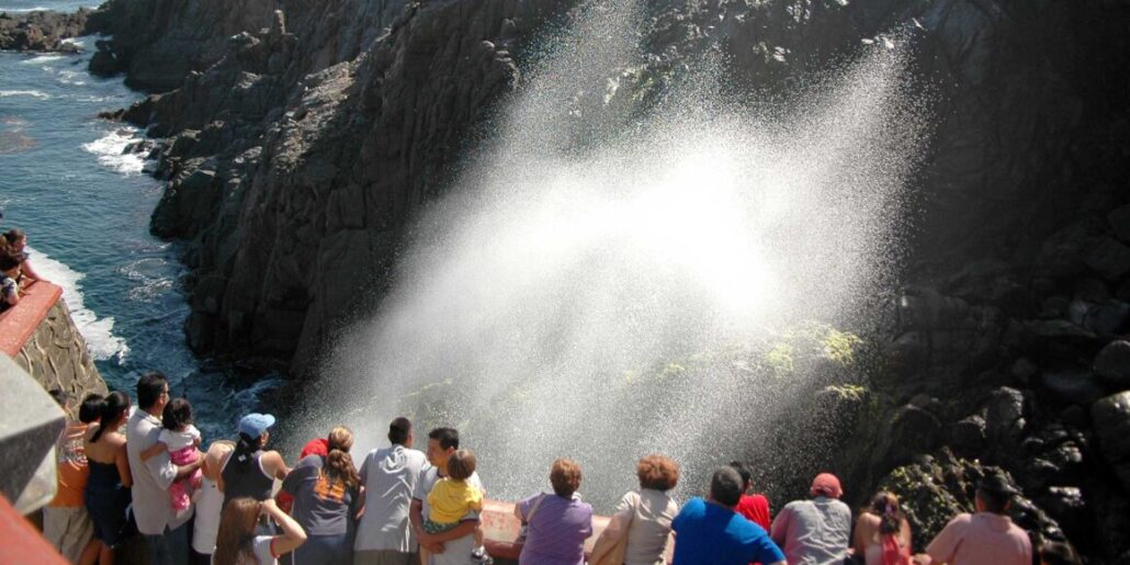 Dentro de sus datos curiosos y a diferencia de otros geisers naturales que lanzan una columna de agua caliente y vapor al aire, La Bufadora es la combinación de una cueva, el oleaje y la presión del aire.