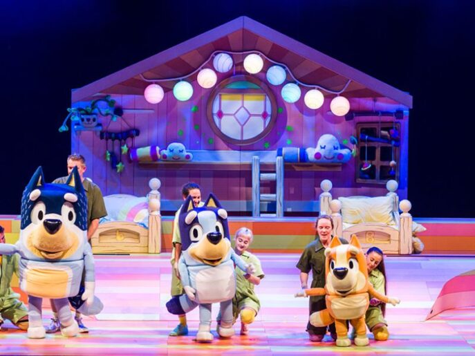 Bluey y El Teatro de Marionetas es una adaptación de la serie animada ganadora de múltiples premios Emmy, sobre una historia original del creador de la serie, Joe Brumm, y música compuesta especialmente por Joff Bush.