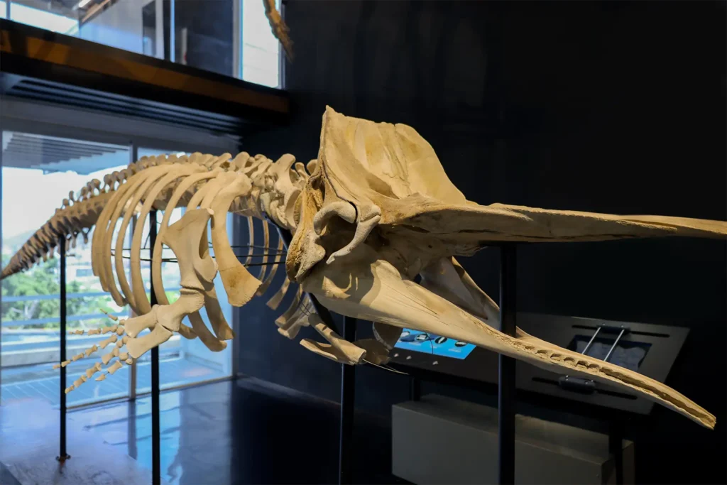 Una de las piezas centrales es la exhibición de restos óseos reales que te permiten dimensionar el tamaño real de especies como la ballena gris o la jorobada, prepárese para sorprenderse con el tamaño de estos ejemplares y aprender todo sobre ellos.