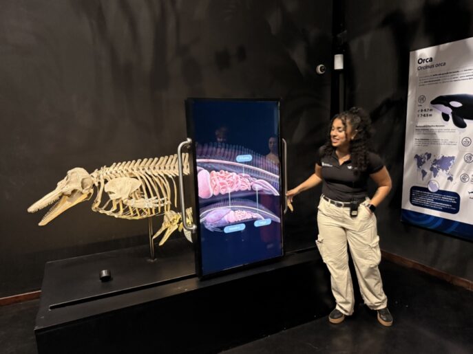 Las salas están equipadas con audio y video que te transportan a las profundidades del Pacífico, permitiendo convivir junto a estos gigantes, y aprender más sobre más especies de la biodiversidad marina y comprender aún mejor el mundo bajo el mar.
